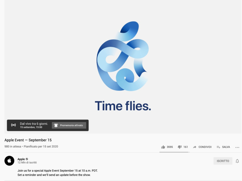 La società ha anche pubblicato un promemoria su YouTube per lo speciale evento, il quale include un chiaro riferimento all’Apple Watch Series 6.