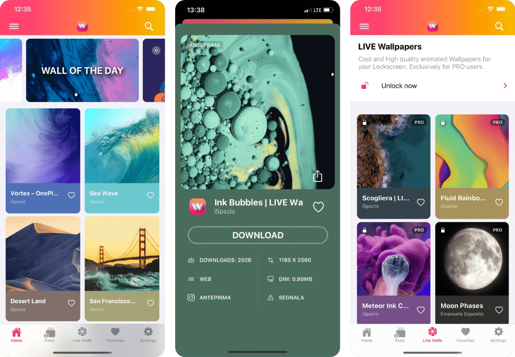 - Abbiamo abilitato (finalmente) la sezione Feed, composta dagli sfondi caricati dagli utenti. Adesso funziona tutto perfettamente: gli sfondi che caricate arrivano al nostro backend affinchè possiamo visualizzarli e moderarli, scegliendo quelli da approvare o da rifiutare a seconda dei nostri standard qualitativi. Tutto questo si traduce sia in una bella opportunità per i fotografi e per i grafici, sia in tantissimi nuovi sfondi da scaricare, completamente originali ed impossibile da trovare su altre piattaforme.