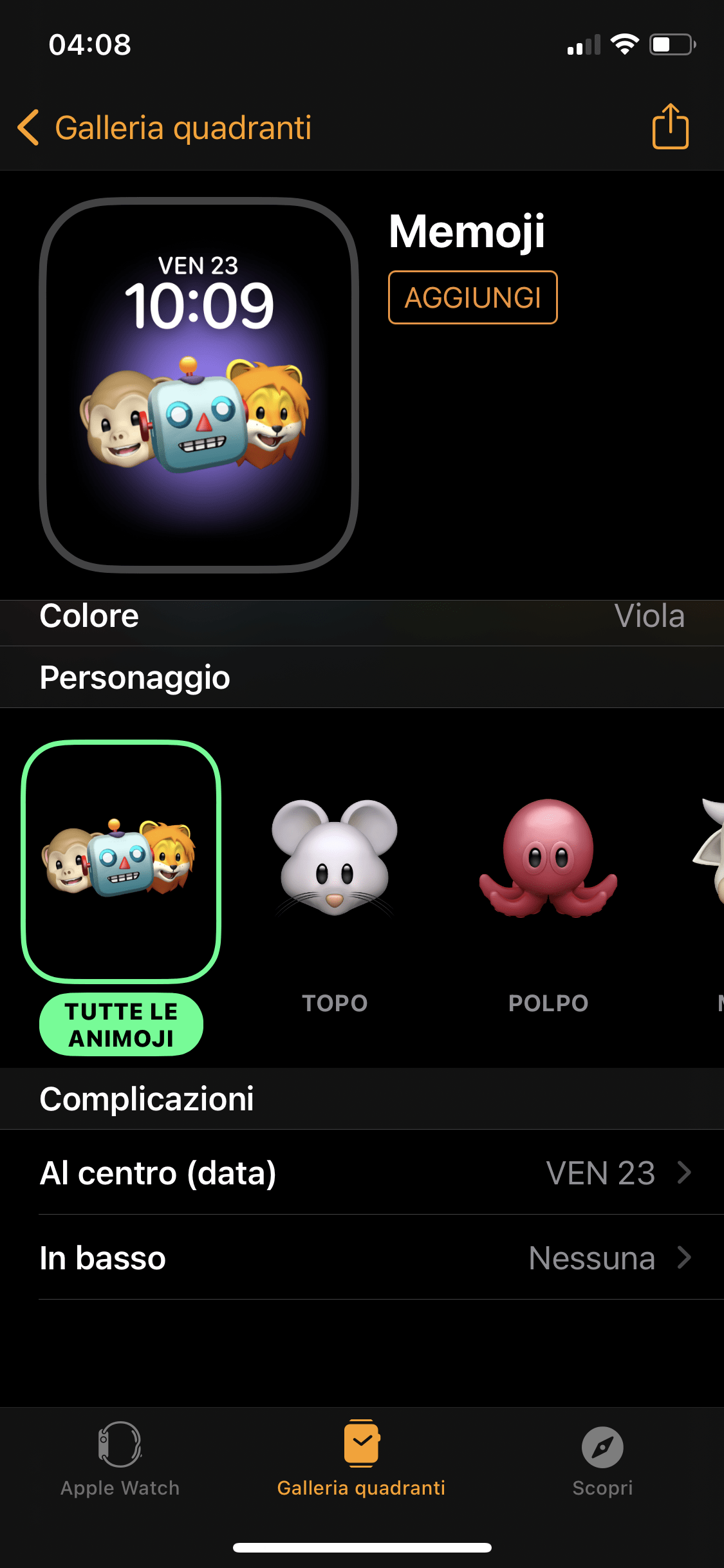 Un quadrante che include le Memoji che abbiamo creato con la nostra faccia e quelle degli animali. Le Memoji si animano reagendo al nostro tocco e complessivamente risulta un quadrante molto carino e simpatico, soprattutto per i più piccoli.