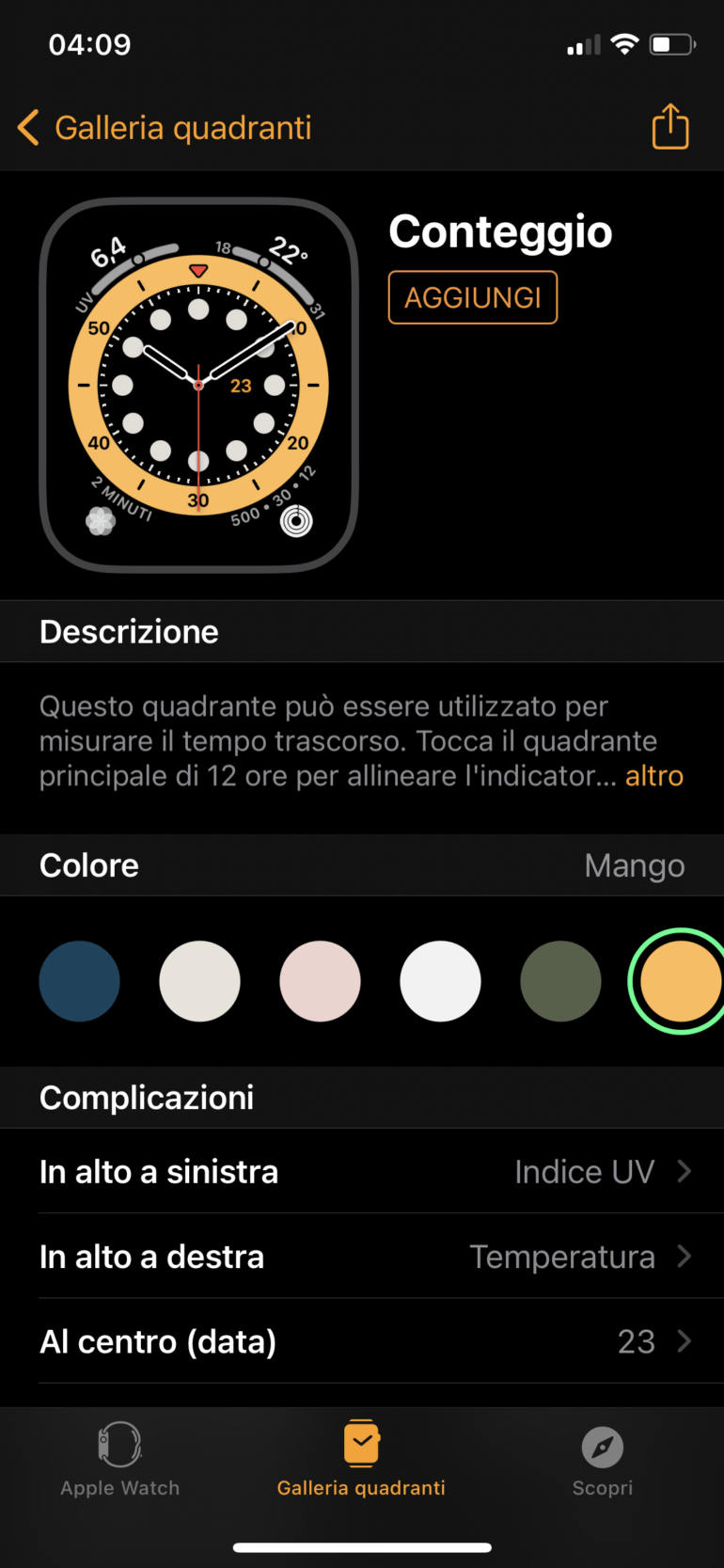 Il quadrante Strisce è uno tra i più versatili disponibili su Apple Watch. Puoi selezionare il numero di strisce che preferisci da 9 a 2, puoi scegliere i colori e ruotare l’angolazione. Puoi creare combinazioni che riflettono il tuo stile, che esprimono l’orgoglio di appartenere al tuo Paese, che rappresentano il tuo impegno per una determinata causa oppure che mostrano quanto ami la tua squadra del cuore.