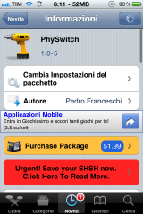 PhySwitch è disponibile in Cydia Store attraverso la repository di BigBoss al costo di 1,99$.