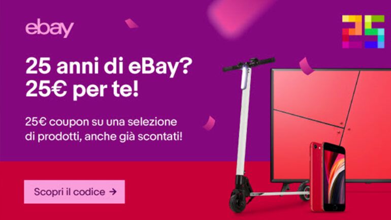 eBay compie 25 anni e per l’occasione ha realizzato un Coupon che sconta di ben 25€ tantissimi prodotti. Ce ne sono diversi che vale la pena acquistare perchè disponibili già ad un prezzo scontato, sul quale è possibile applicare questo ulteriore sconto. Vediamo qual è il codice da utilizzare e quali i prodotti più interessanti. In questa pagina li trovate tutti. Coupon: PARTYEBAY25