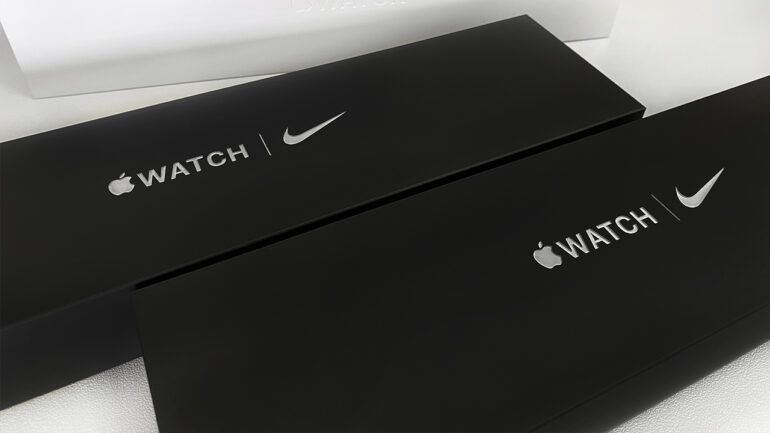 La confezione dei modelli Nike è completamente nera con il logo bianco. Nei modelli “normali” invece, è tutto completamente bianco ad eccezione della variante PRODUCT(RED) dove troviamo il logo “Apple Watch” inciso e colorato di rosso.