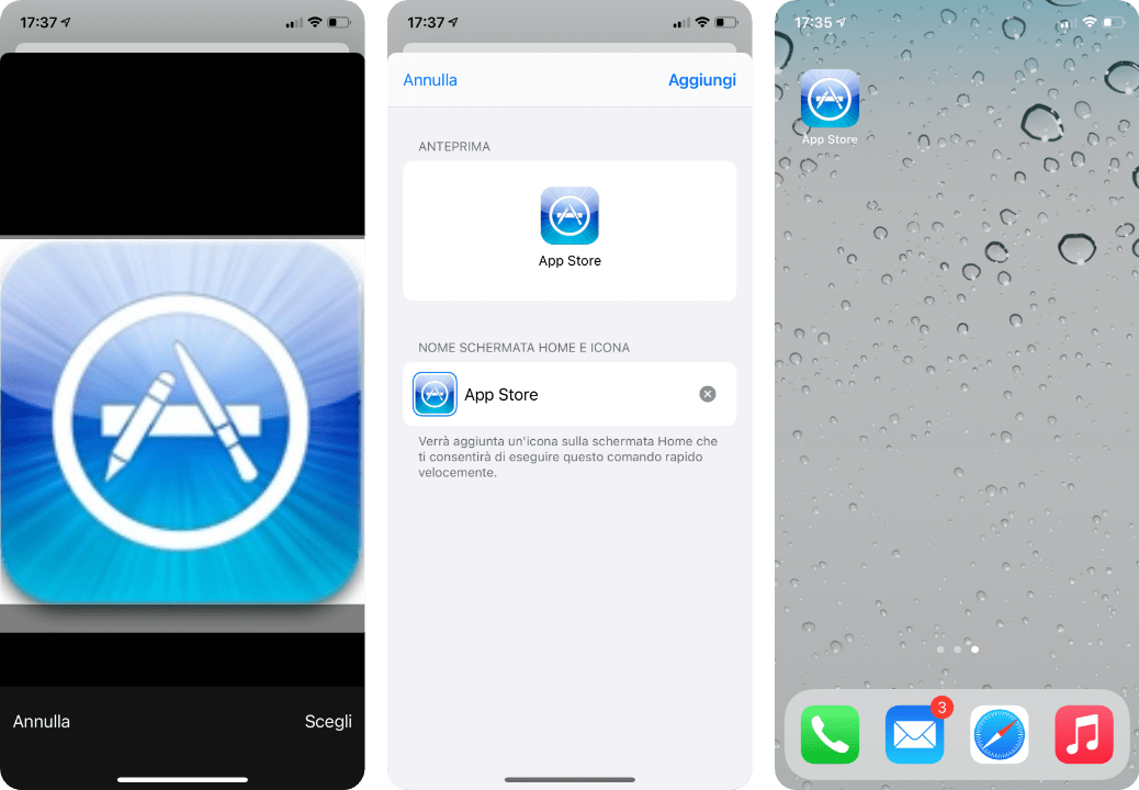 9. Dopo aver selezionato la nuova icona, modificate il nome del Comando sostituendolo con quello dell’applicazione di cui volete sostituire l’icona (App Store, Impostazioni e così via). Premete quindi su Aggiungi.