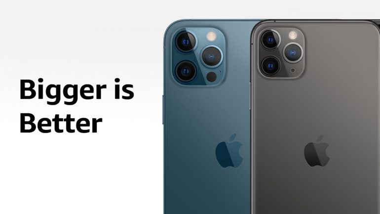 Confrontando i nuovi iPhone 12 Pro con gli iPhone 11 Pro, abbiamo notato che il comparto delle 3 fotocamere è davvero molto più grande sui nuovi modelli. L’iconico “quadrato” che ospita i sensori dedicati a foto e video è cresciuto in volume, come si può notare facilmente da questa immagine comparativa che abbiamo realizzato: