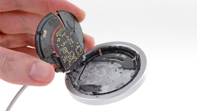 Confrontando la bobina con quella presente nel caricatore dell’Apple Watch, iFixit ha notato che sono molto diverse. Il caricatore dello smartwatch utilizza una sola calamita centrale, mentre quello dell’iPhone 12 e 12 Pro ha una serie di calamite poste tutte esternamente.