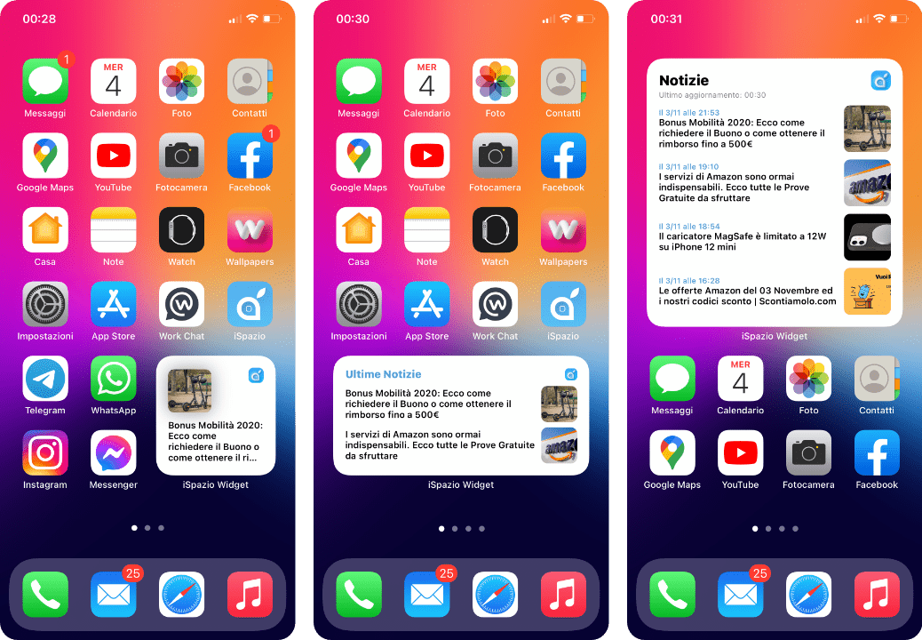 - Il Widget piccolo (2×2) mostra l‘ultimo articolo pubblicato su iSpazio;