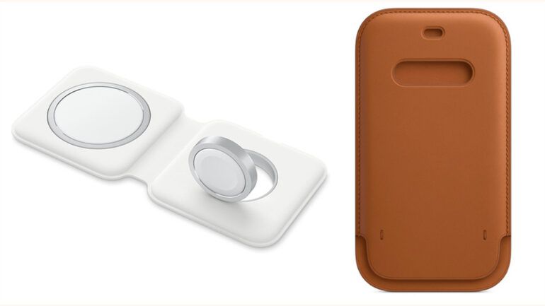 Sull’Apple Store online sono elencati come “in arrivo” il MagSafe Charger Duo e la custodia MagSafe in pelle, entrambi al prezzo di 149,00€.