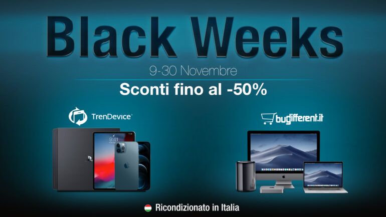 Perché aspettare il Black Friday? Su TrenDevice e BuyDifferent gli sconti fino al -50% su tutti i Ricondizionati sono già iniziati e proseguiranno fino al 30/11. Ogni giorno trovate nuove offerte ed occasioni imperdibili da prendere al volo, fino ad esaurimento scorte. Ogni giorno sarà un Black Friday! Cogliete l’occasione per cambiare il vostro smartphone, tablet o Mac scegliendolo Ricondizionato: su tutti i prodotti avete la garanzia di 1 anno, reso gratis nei primi 14 giorni e la garanzia 100% Soddisfatti o Rimborsati.
