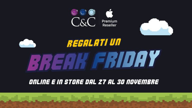 È partito il Black Friday di C&C! Il più grande Apple Premium Reseller d’Italia si prepara ad accogliere i clienti per una quattro giorni di sconti eccezionali e shopping hi-tech. Dal 27 al 30 novembre, infatti, online e in tutti i 39 store del gruppo, oltre 50 prodotti Apple a prezzo scontato: Apple Watch, iPhone, Mac e tantissimi accessori.