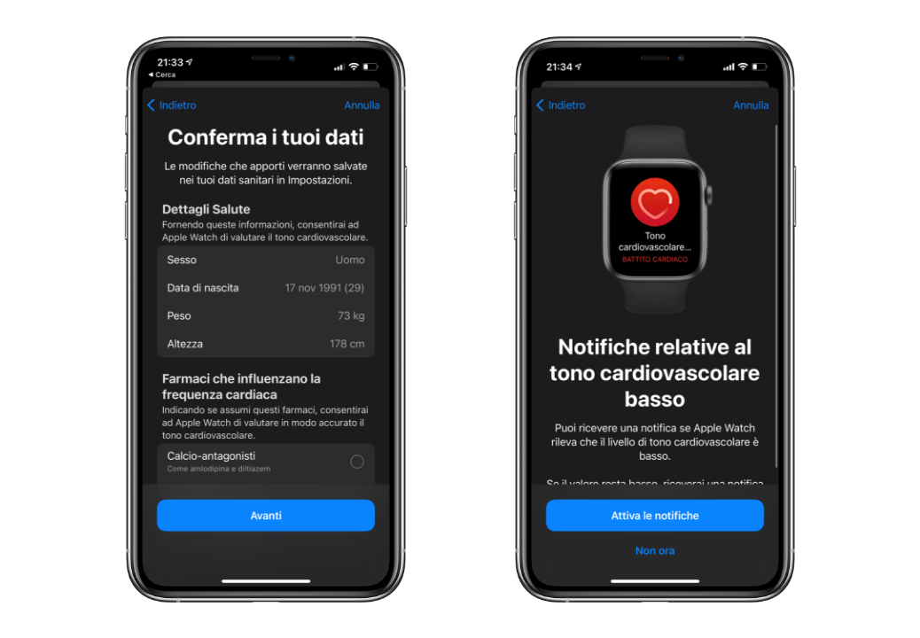 - Attiviamo le notifiche relative al tono cardiovascolare basso.