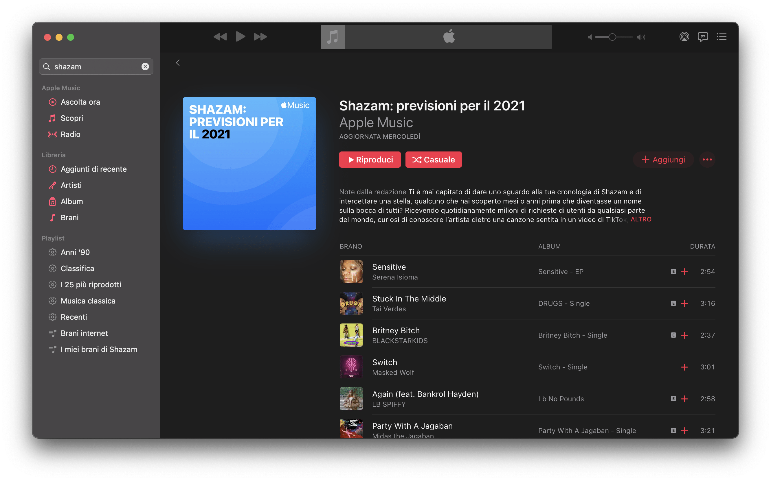 La playlist Shazam: previsioni per il 2021 può essere ascoltata su Apple Music.