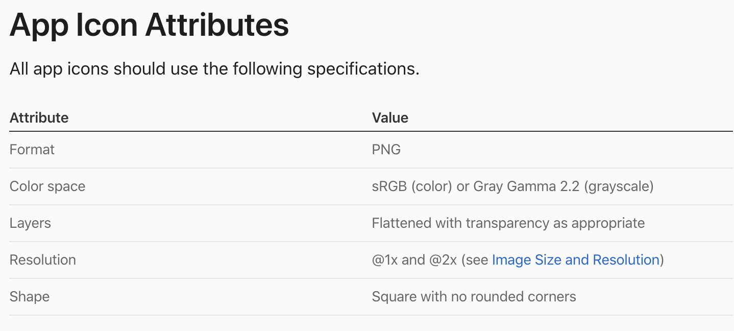 Nel documento, Apple spiega nel dettaglio tutti i passaggi da eseguire per realizzare una fantastica icona. Inoltre, la società ha condiviso anche una tabella contente tutte le specifiche che un’icona deve utilizzare: