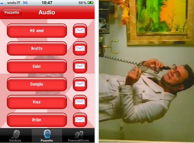 L’applicazione è davvero completa e semplice da usare, una vera antologia del meglio dei tre artisti, divisa in quattro aree (audio, video, foto e frasi) che divertirà voi e i vostri amici con: