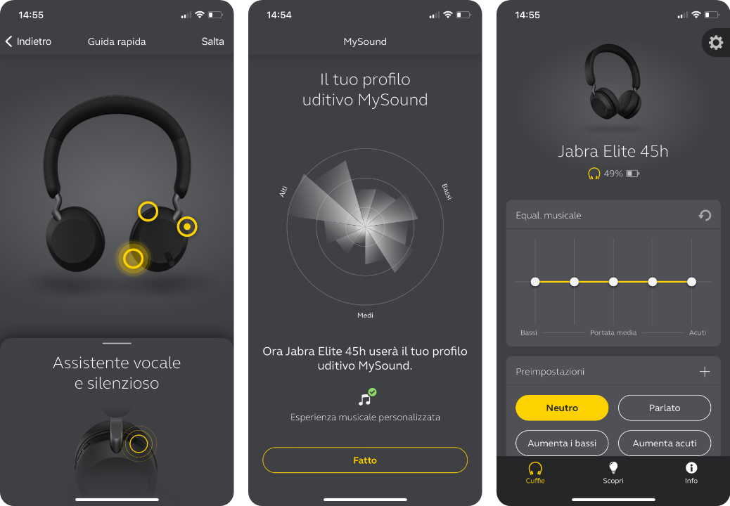 Jabra è un’azienda che conosciamo da anni. L’abbiamo conosciuta durante un Mobile World Congress diverso tempo fa e ci ha lasciati sempre stupidi sulla qualità dei prodotti e la cura per i dettagli. A meno di 100€ non troverete cuffie over ear migliori in circolazione, e l’applicazione fornisce un valore aggiunto non indifferente perchè non offre soltanto gli equalizzatori ma è in grado di calibrare le cuffie in base alla vostra persona ed al vostro livello di udito. Vedremo poi tutto questo più avanti.