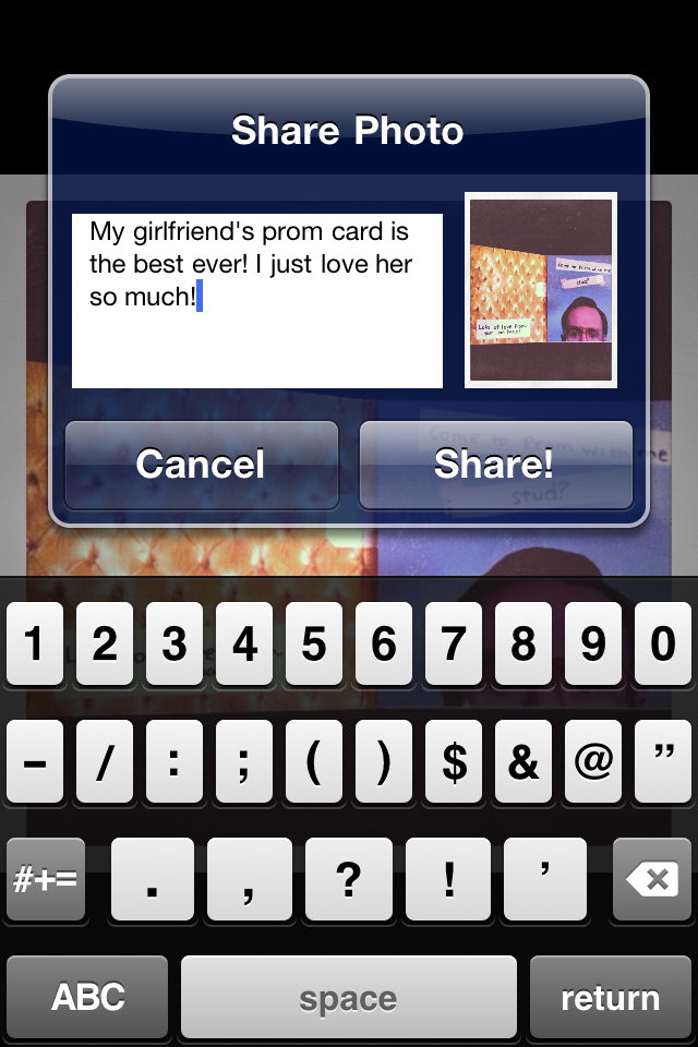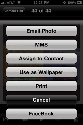 Si chiama FBUploader e vi darà la possibilità di caricare immagini su Facebook direttamente dal rullino fotografico, poichè si aggiungerà una opzione nativa nel menu dedicato allo share di immagini. Come potete vedere dall’immagine qui sopra, vi ritroverete un pulsante Facebook dedicato.