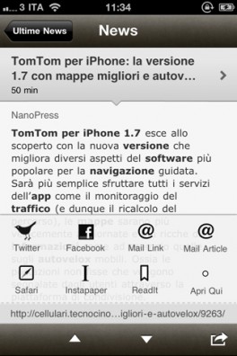 Grazie agli appositi strumenti, inoltre, saremo in grado di condividere ciò che ci piace su Facebook, Twitter, salvarlo su ReadIt Later o Instapaper, o più semplicemente inviarlo ai propri amici. Il tutto comodamente e in pieno stile Apple.