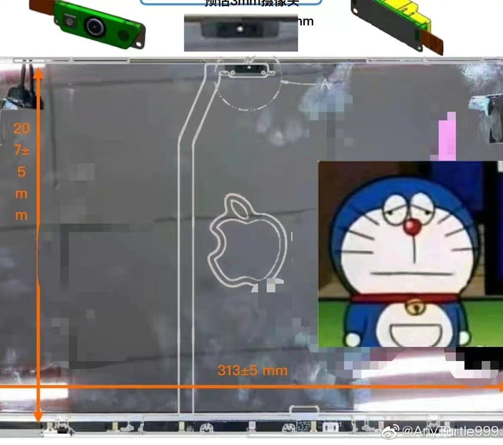 Nell’immagine condivisa sul social cinese Weibo è immortalata la presunta scocca superiore del nuovo MacBook Pro, quella che poi andrebbe ad ospitare il display. Balza subito all’occhio un modulo che rimanda al notch e che include la FaceTime Camera, il microfono e il sensore per il True Tone.