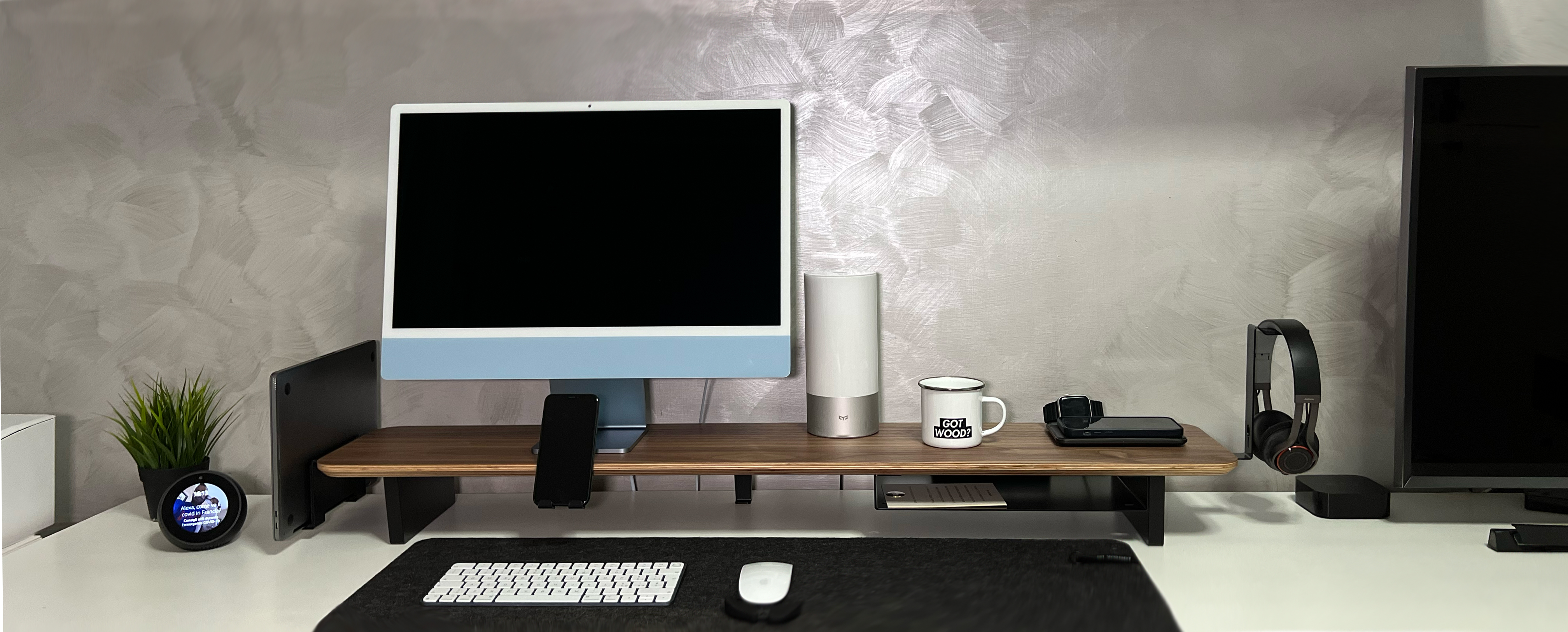 Una semplicissima scrivania bianca con un iMac ed accessori sparsi qua e là. Adesso invece vi mostro com’è diventata la mia scrivania dopo l’installazione del Setup Cockpit: