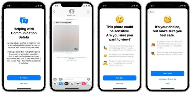 Quando la feature è abilitata, l’app Messaggi riesce a rilevare nudità nelle foto inviate e/o ricevute da un minore. In tal caso, l’immagine viene offuscata in automatico e, allo stesso tempo, il minore viene avvisato del contenuto e invitato a contattare qualcuno di fiducia per chiedere aiuto.