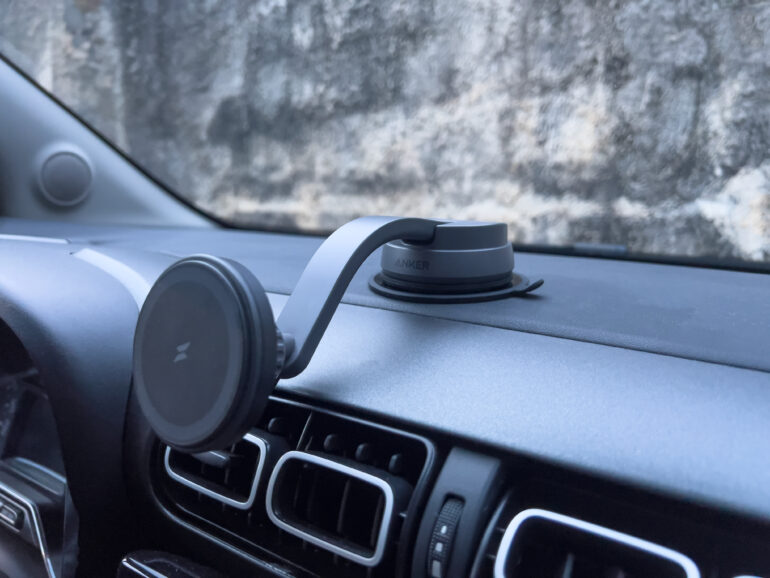 Per montare correttamente questo supporto e caricatore wireless nella vettura, bisogna prima attaccare il mouting pad (un adesivo) sul cruscotto, dopodichè utilizzeremo la ventosa ed il sistema a pressione integrato per ancorare l’accessorio. Davvero un ottimo lavoro da parte di Anker, il primo che è riuscito a soddisfare le mie necessità e le mie aspettative!