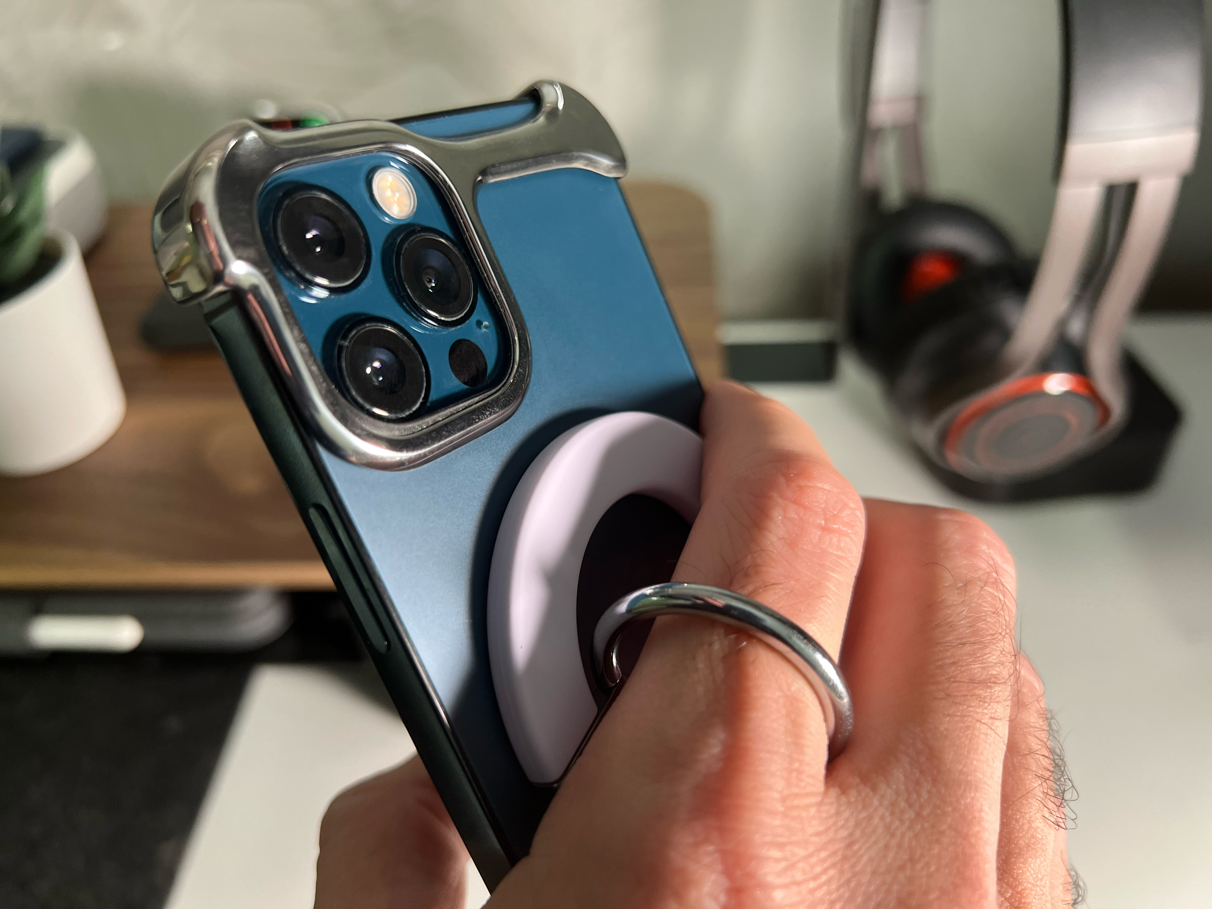 Partiamo dal più semplice dei prodotti, quello con meno pretese di tutti. Si tratta di un semplice anello che si aggancia esattamente al cerchio di magneti presenti nel retro del vostro iPhone oppure ad una qualsiasi custodia MagSafe. Il risultato è un grip davvero molto solido ed avrete la possibilità di inserire un dito all’interno dell’anello in metallo per non rischiare di far scivolare il telefono.