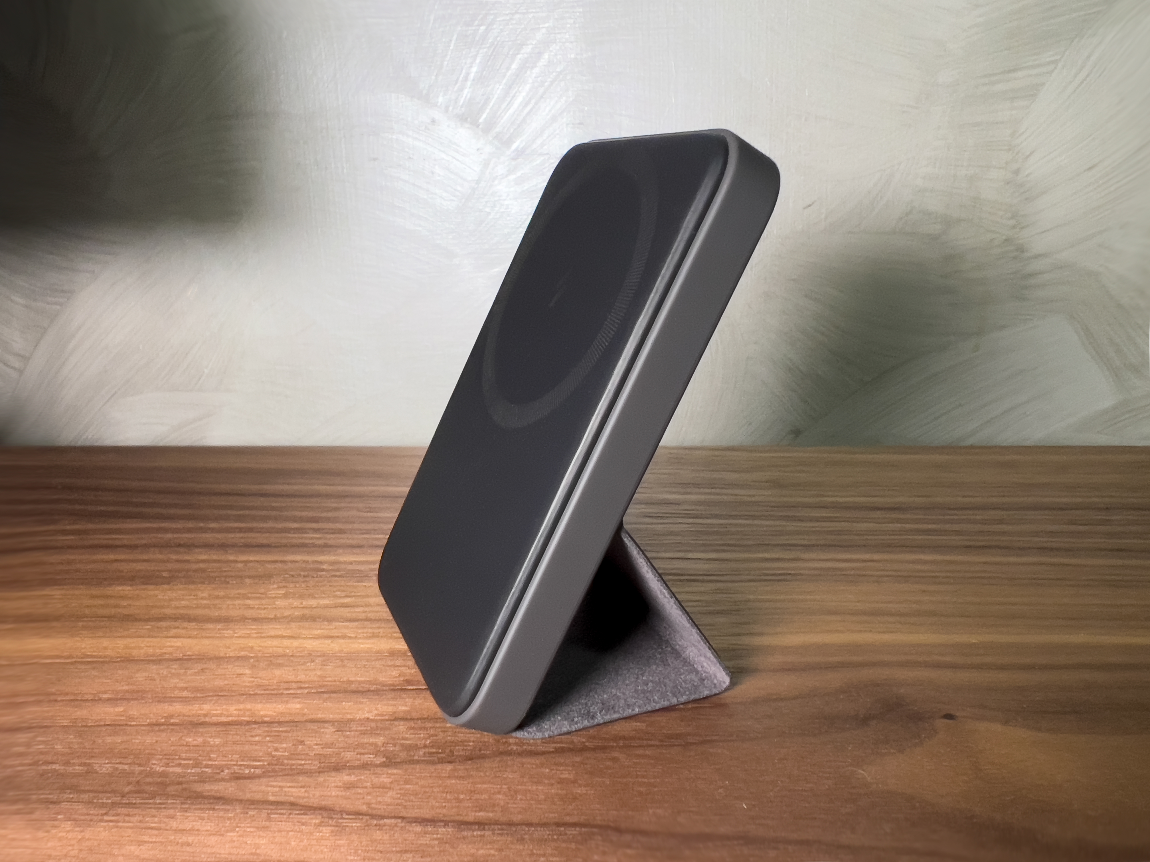 Sostanzialmente si tratta di uno stand, ovvero un supporto per scrivania all’interno del quale è possibile inserire una batteria esterna da 5.000 mAh dotata di tecnologia MagSafe, simile a quella vista precedentemente, ma senza lo stand “folio” nel retro.