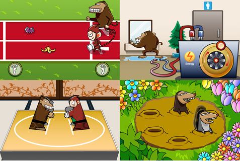 Divertiamoci assieme a questi due simpatici personaggi che ne combinano di tutti i colori. Gareggiamo su una pista di atletica, tosiamo i capelli al nostro amico, sfidiamolo ai rigori o ad una gara di salto alla corda.