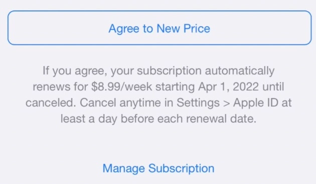 Al momento, Apple chiede ai clienti di accettare l’aumento dei prezzi quando questo varia. Se un cliente non tocca il pulsante “Accetta il nuovo prezzo”, il suo abbonamento viene automaticamente annullato. Con la nuova funzione invece, gli utenti saranno ancora informati dell’aumento di prezzo ma saranno loro che dovranno entrare per disattivare l’abbonamento, altrimenti lo stesso continuerà a rinnovarsi.