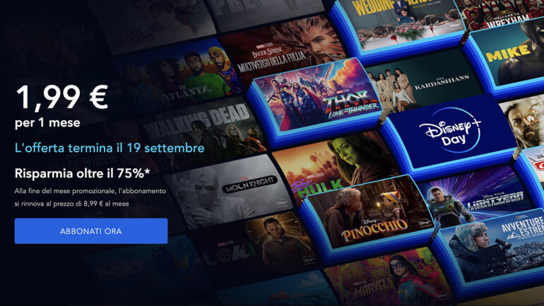 La promozione Disney+ Day potrà essere attivata fino al 19 Settembre. Si risparmia oltre il 75% e non ci sono vincoli.