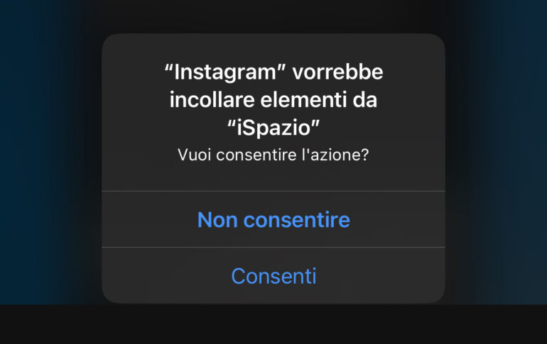 Provate a copiare un link di un sito ed inserirlo in una storia Instagram utilizzando l’apposito sticker dei Link, apparirà subito il popup con scritto “Instagram” vorrebbe incollare da “Safari”. Ovviamente possiamo scegliere di consentire l’azione oppure negarla.
