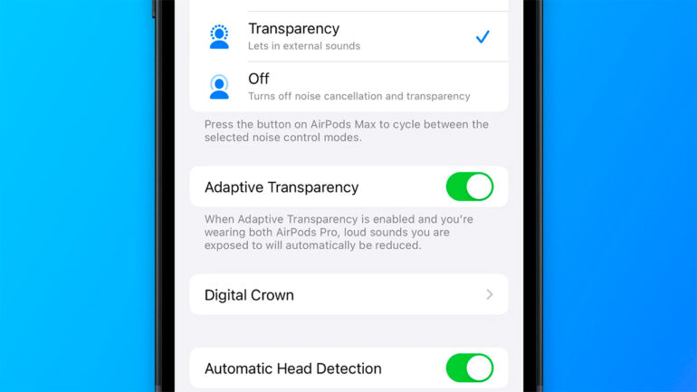 Con il rilascio di iOS 16.1 beta 3 della scorsa settimana, i proprietari di AirPods Pro e AirPods Max di prima generazione hanno notato che l’aggiornamento ha abilitato l’opzione “Trasparenza adattiva” per queste cuffie.