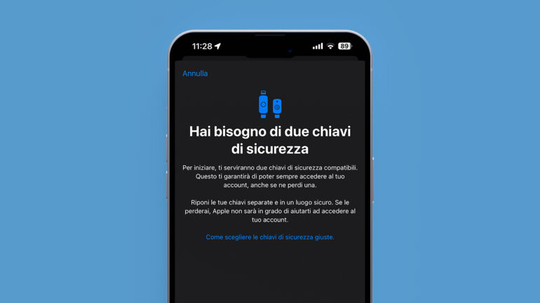 Coloro che abilitano la funzione devono fare molta attenzione a non perdere le proprie chiavi di sicurezza, in quanto ciò potrebbe comportare la perdita permanente dell’accesso al proprio ID Apple. Per questo motivo, dobbiamo impostare almeno due chiavi di sicurezza, con un massimo di sei in totale.