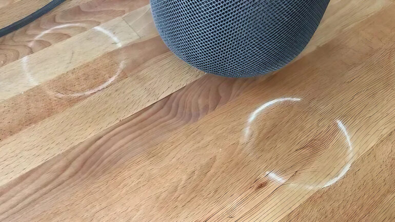 Apple consiglia di posizionare l’altoparlante su una superficie diversa se ci si preoccupa di questo problema anche se i segni dovrebbero sparire pulendo delicatamente la superficie in legno con un panno asciutto oppure umido.