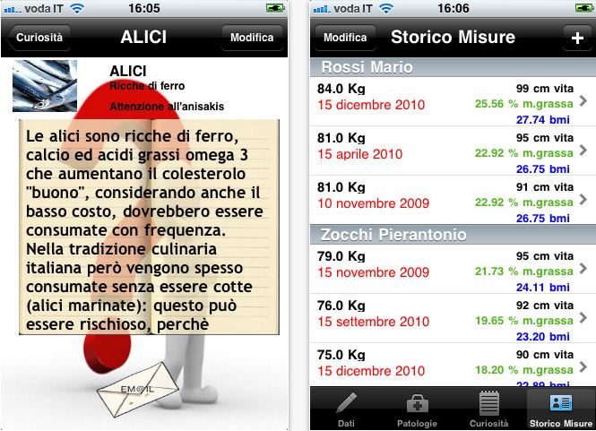 L’applicazione calcola anche l’indice di massa corporea, la massa grassa, il peso ideale e la morfologia e ti dà informazioni sul tuo stato di forma. Potremo tenere traccia dei miglioramenti nel tempo della massa grassa e del peso di tutti i nostri famigliari, infatti è possibile salvare i dati di più utenti.