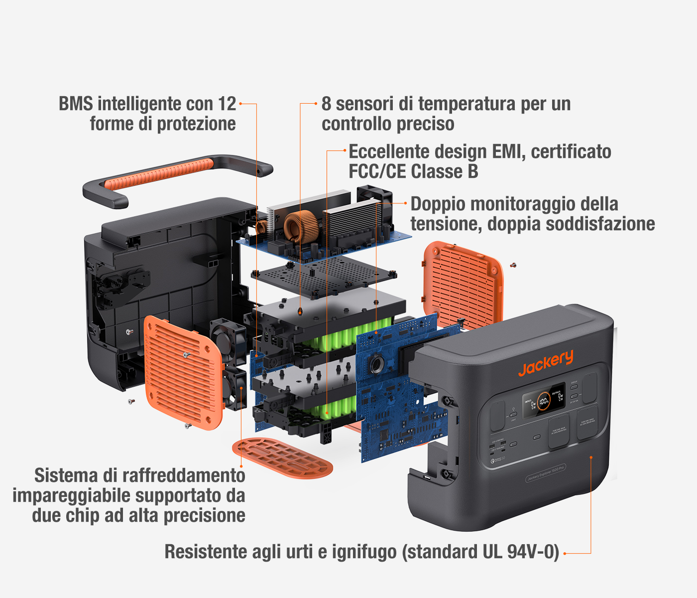 Inoltre, l’Explorer 1500 Pro è dotato di un sistema intelligente di gestione della batteria (BMS). Le 12 funzioni di protezione includono scenari imprevisti come sovracorrente, cortocircuito, scarica profonda, sovraccarico, sovratensione e surriscaldamento, garantendo così una sicurezza ottimale.