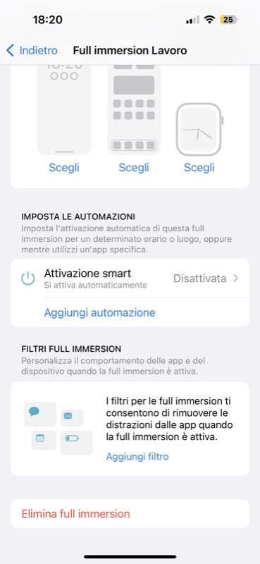 2. Entriamo in una delle modalità Full Immersion, poi su Filtri Full Immersion > Aggiungi Filtro
