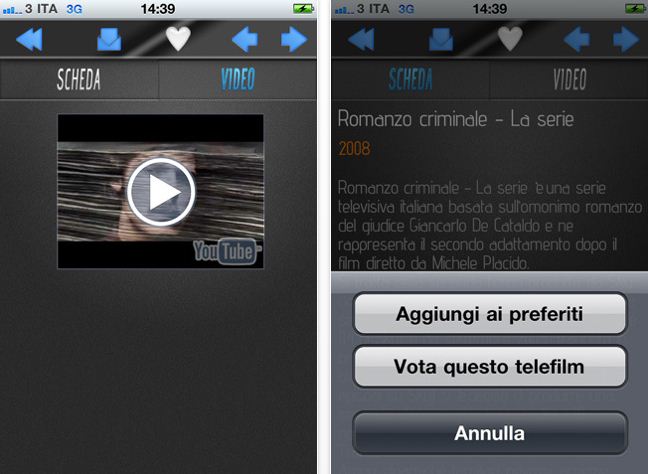 Potrete condividere sui più importanti social network o per email sia il contenuto della scheda sia il link al video. Abbiamo inoltre la possibilità di segnalare i telefilm mancanti o le problematiche che riscontriamo con l’utilizzo dell’applicazione. Per ovvi motivi di spazio i video sono esterni all’applicazione, richiedono quindi il collegamento alla rete per essere visualizzati.