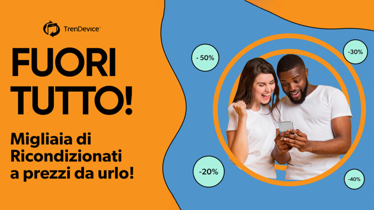 Le occasioni del Fuori Tutto vi aspettano anche presso gli Store TrenDevice a Milano, Roma, Bologna e Avellino. In Store è possibile visionare, in totale sicurezza, l’intera gamma di prodotti ricondizionati trattati dall’azienda: dagli iPhone agli iPad, dalle AirPods ai Samsung Galaxy, le PS4 e i Mac. Non solo: potrete vendere il vostro usato con il servizio di instant buy oppure permutarlo ed ottenere uno sconto immediato sull’acquisto di un altro prodotto. E per chi è già cliente, il TrenDevice Store è il porto sicuro in cui approdare per ricevere assistenza post-vendita per ogni evenienza.