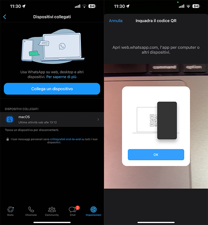 - Puntiamo il nostro iPhone verso lo schermo del dispositivo da collegare per eseguire la scansione del codice QR.