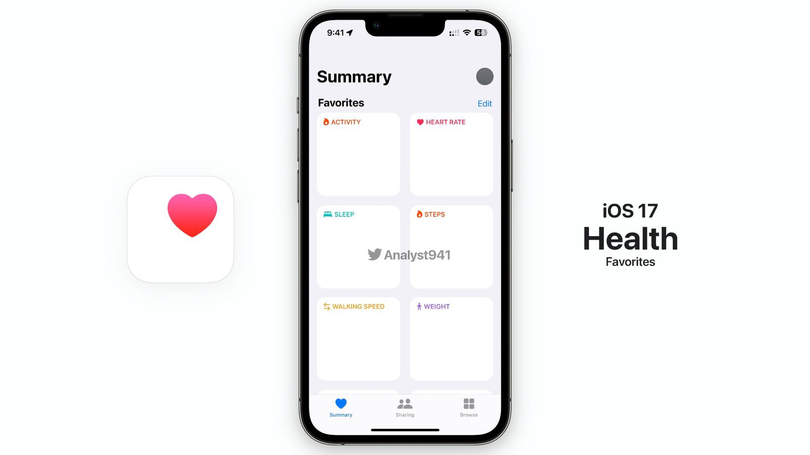 Per quanto riguarda l’app Salute, Analyst941 afferma che la sezione “Preferiti” in “Riepilogo” vedrà una riprogettazione con un’interfaccia in stile schede. Ogni carta avrà “dati visivi” che includono “grafici colorati”, “tabelle” e altre informazioni.