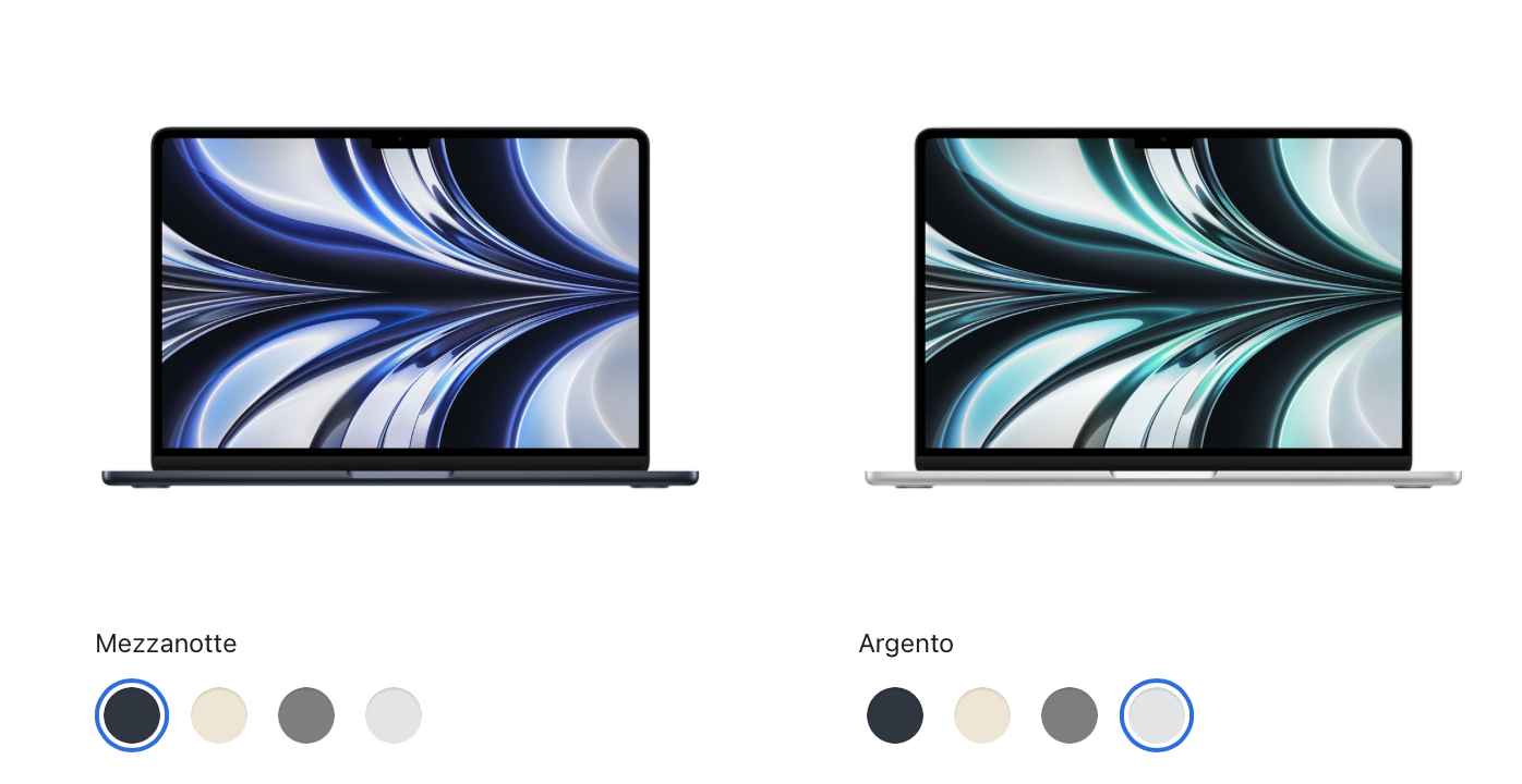 Oltre al display più grande, la macchina avrà un design identico all’attuale modello. L’Air da 13 pollici ha una tacca sul display, una fotocamera 1080p, una porta di ricarica MagSafe 3, due porte USB-C/Thunderbolt 3, jack per cuffie da 3,5 mm, una Magic Keyboard con tasti a forbice e Touch ID e un Trackpad Force Touch, ed è disponibile in diverse opzioni di colore tra cui Mezzanotte, Galassia, Giro siderale e Argento.