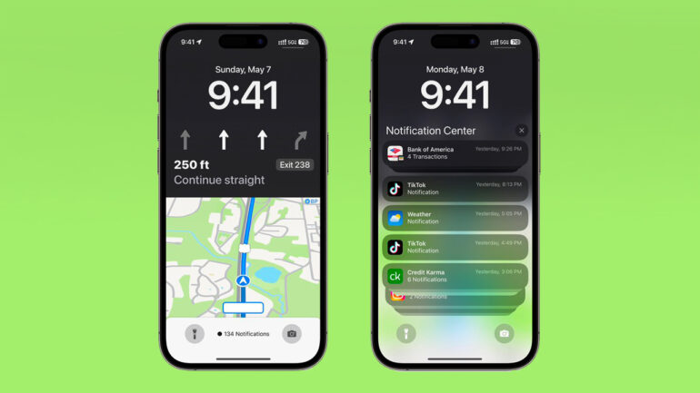 A differenza dell’attuale design, il presunto nuovo layout della Live Activity di Mappe di iOS 17 mostrerà la data e l’ora nella parte superiore e le indicazioni stradali nella parte centrale del display, in modo simile ad Apple Music. Inoltre, l’elenco delle notifiche, la torcia e il tasto dell’app Fotocamera verranno visualizzati in basso.