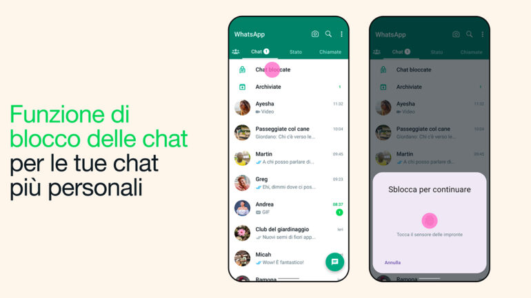 Quando usiamo il lucchetto, la chat viene rimossa dalla posta e nascosta in una cartella dedicata cui è possibile accedere solo con la password o con i dati biometrici del nostro dispositivo, ad esempio con il Face ID. I contenuti della chat vengono nascosti automaticamente anche nelle notifiche.