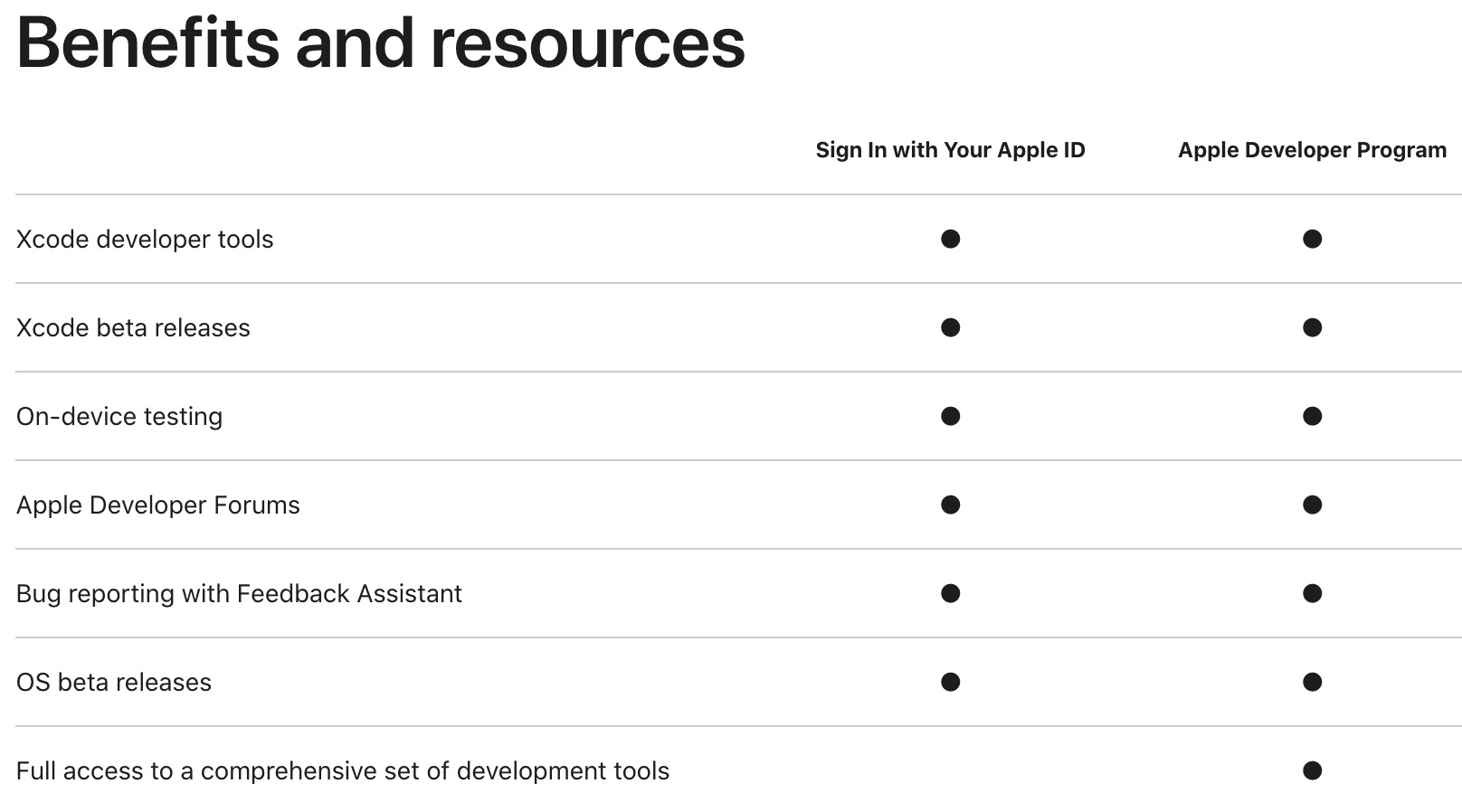 Adesso puoi imparare gratuitamente a sviluppare app per tutte le piattaforme Apple, senza doverti abbonare. Con un semplice Apple ID, puoi accedere ad Xcode, ai download del software beta, alla documentazione, al codice di esempio, ai forum e all’Assistente Feedback, oltre a poter testare le tue app sui dispositivi. Se non hai ancora un Apple ID, puoi crearne uno ora. Per distribuire le app invece, unisciti al programma per sviluppatori Apple.