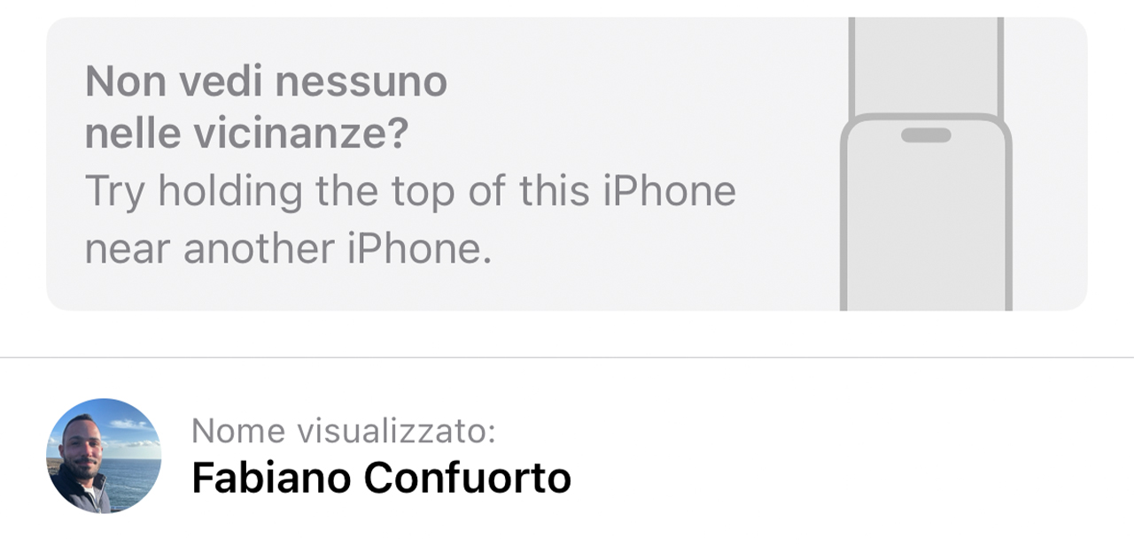 E’ stato finalmente attivato NameDrop ovvero quella funzione che sfrutta il protocollo di AirDrop per scambiare il proprio numero di telefono (ed eventualmente anche le email ed altri dati associati) con un’altra persona semplicemente avvicinando i due telefoni.
