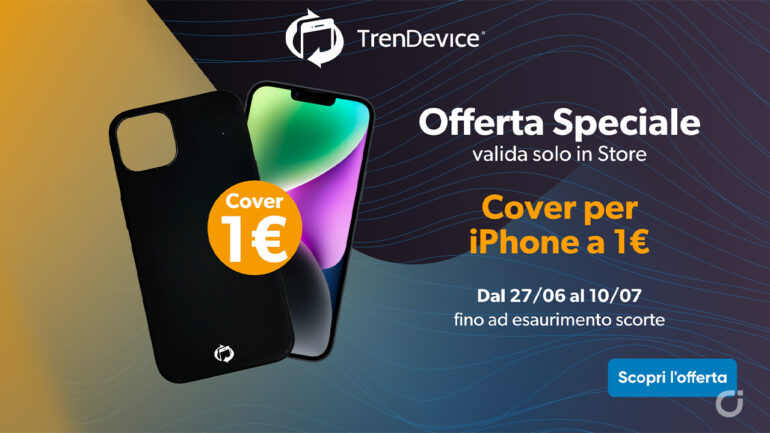 TrenDevice, fino al 10 Luglio, vi accoglie presso tutti i TrenDevice Store con un’offerta incredibile da non farsi scappare: potrete infatti acquistare la Cover per iPhone brandizzata TrenDevice allo straordinario prezzo di 1€.