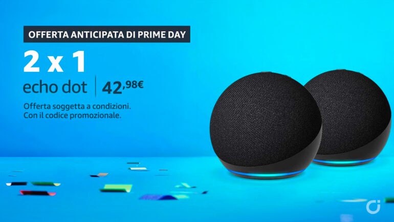 2x1 su Echo Dot (5ª generazione, modello 2022). Aggiungetene 2 nel carrello e poi inserite il Coupon così ne pagherete soltanto 1
