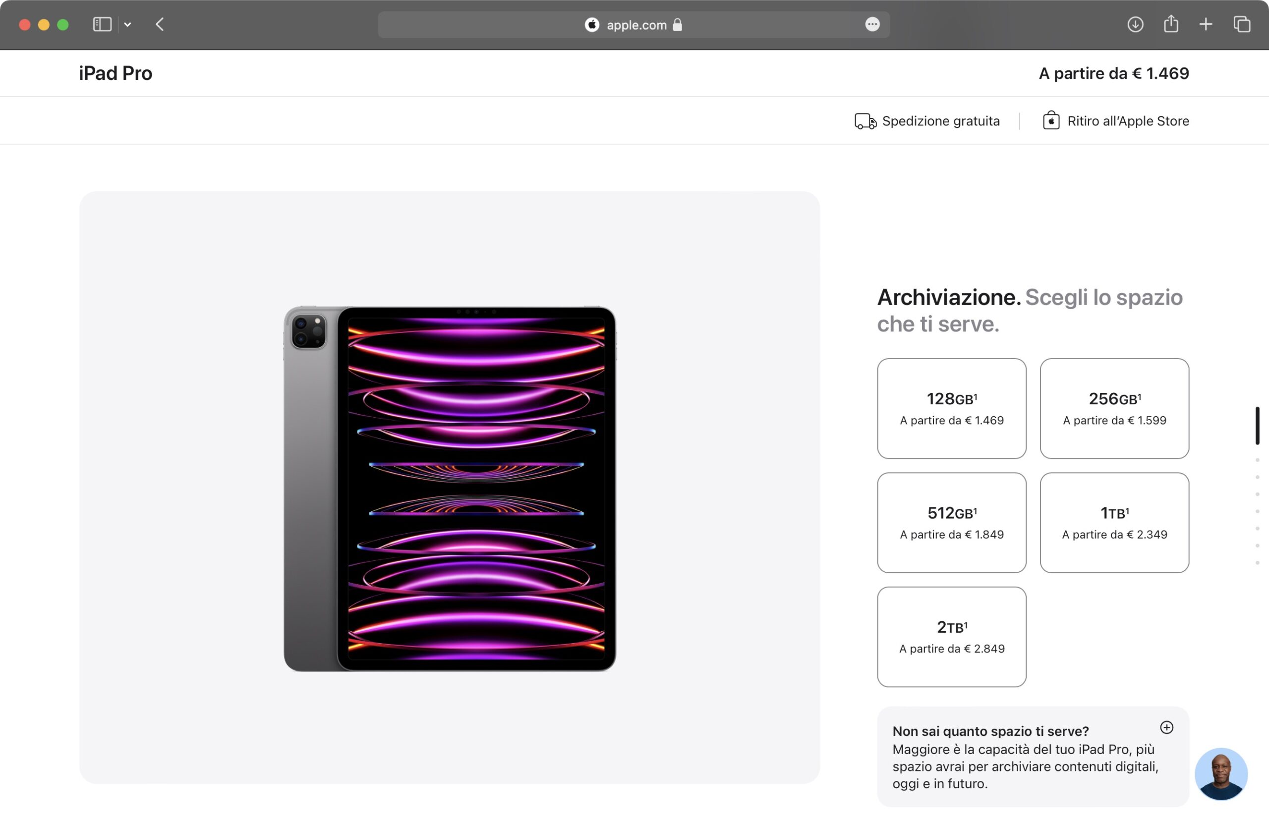 Attualmente, Apple offre i modelli di iPad Pro con una scelta di cinque opzioni di storage: