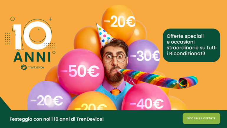 Visitate subito la pagina dedicata della promozione per scoprire più nel dettaglio le offerte dei 10 anni di attività di TrenDevice.